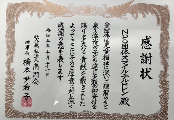 smile childrenチャリティー活動に於いて得た収益金の一部で新
